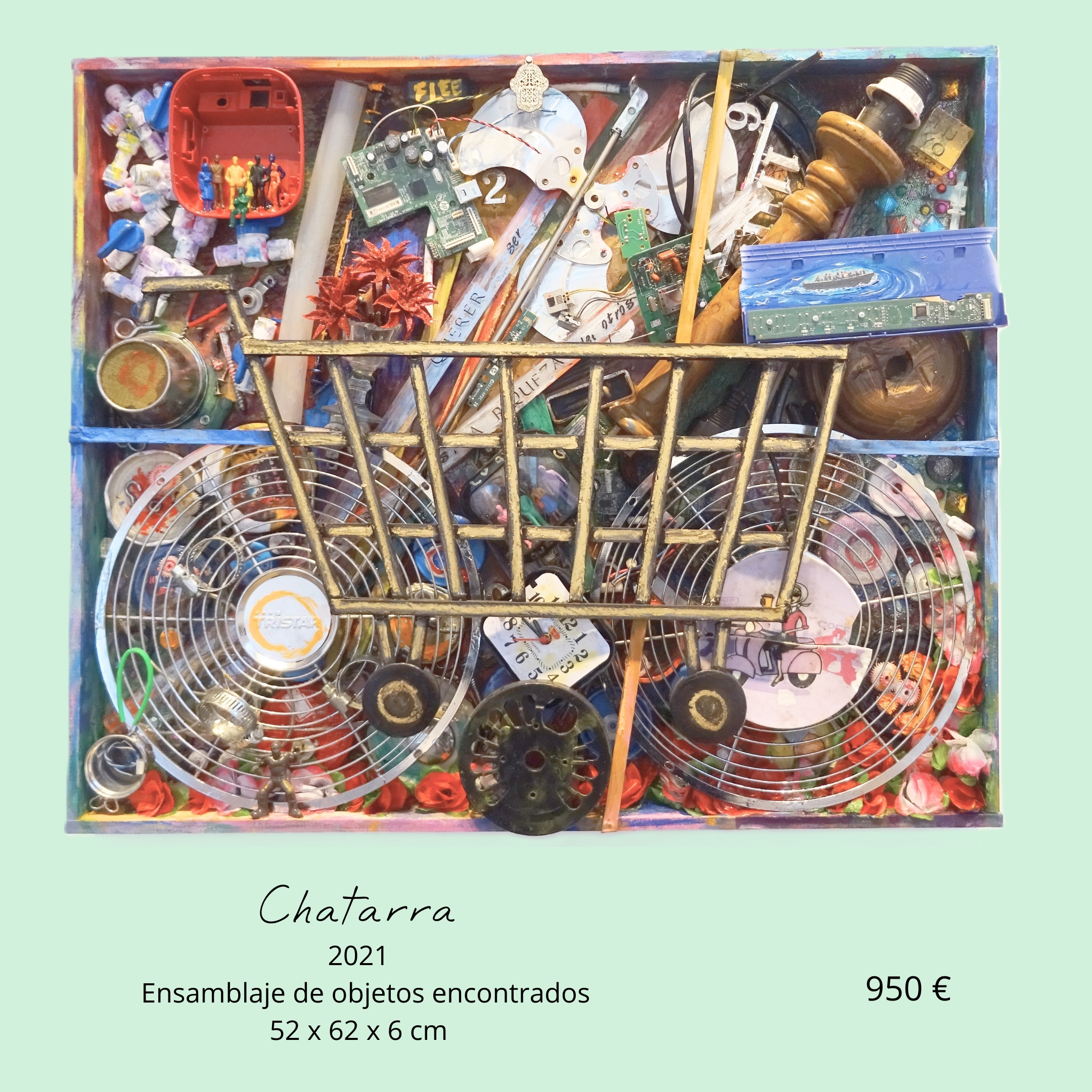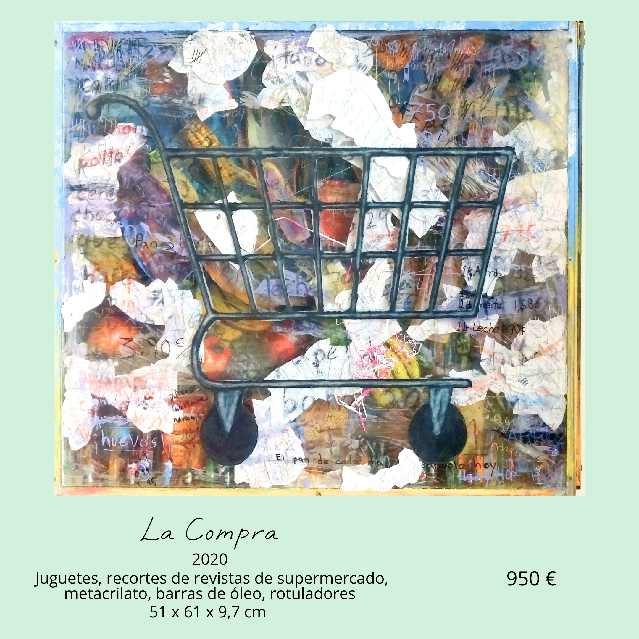 A través del ensamblaje, la pintura y el dibujo, me acerco a los márgenes de la sociedad —a las vidas invisibles y a los objetos desechados— para revelar las historias que se esconden en aquello que consideramos inútil. El carrito se convierte así en un testimonio de lo que somos como sociedad: una mezcla de abundancia, precariedad y deseo.